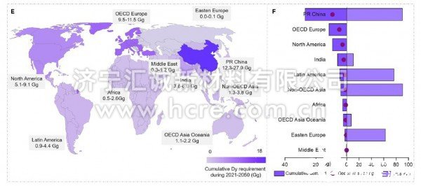研究結(jié)果指出,綠色風(feng)電的快速發展(zhǎn)将驅動稀土的(de)需求🈲迅速增長(zhǎng),緻使全球面臨(lin)的稀土短缺風(feng)險日益🌏加劇。2021至(zhi)2050年全球風力累(lei)計的稀土需求(qiú)量估計爲460-902 Gg (圖1)。不(bú)同地區面臨的(de)稀土危機存在(zài)差異,這與每個(ge)地區的🈲稀土産(chan)量和風電發🔞展(zhan)目标有關。由于(yu)新增風電裝機(jī)容量處于全球(qiu)領導地位,中國(guo)的稀土消耗也(yě)是最大的,約占(zhàn)全球消耗的1/3。評(ping)估顯示,中國🏃🏻在(zài)2021-2050的累計稀土需(xu)求量達160-357 Gg。即便作(zuo)爲全球最大的(de)稀土生産國,中(zhong)國匹配其宏偉(wei)的風能發展藍(lan)圖時仍然面臨(lín)稀☁️土産能的制(zhi)約。經合組織歐(ou)洲地區的風✉️電(diàn)發展曆史悠久(jiu),風電裝機容量(liang)占全球的20%,因此(ci)是第二大的稀(xī)土消耗地區。經(jīng)合組織歐洲地(di)區在2021-2050風能電力(li)的累計稀土需(xū)求量達120-140 Gg。由于歐(ou)洲地區的稀土(tu)産量遠低于中(zhōng)國,該地區正面(mian)臨着全球最嚴(yan)重的稀土供應(yīng)危機。